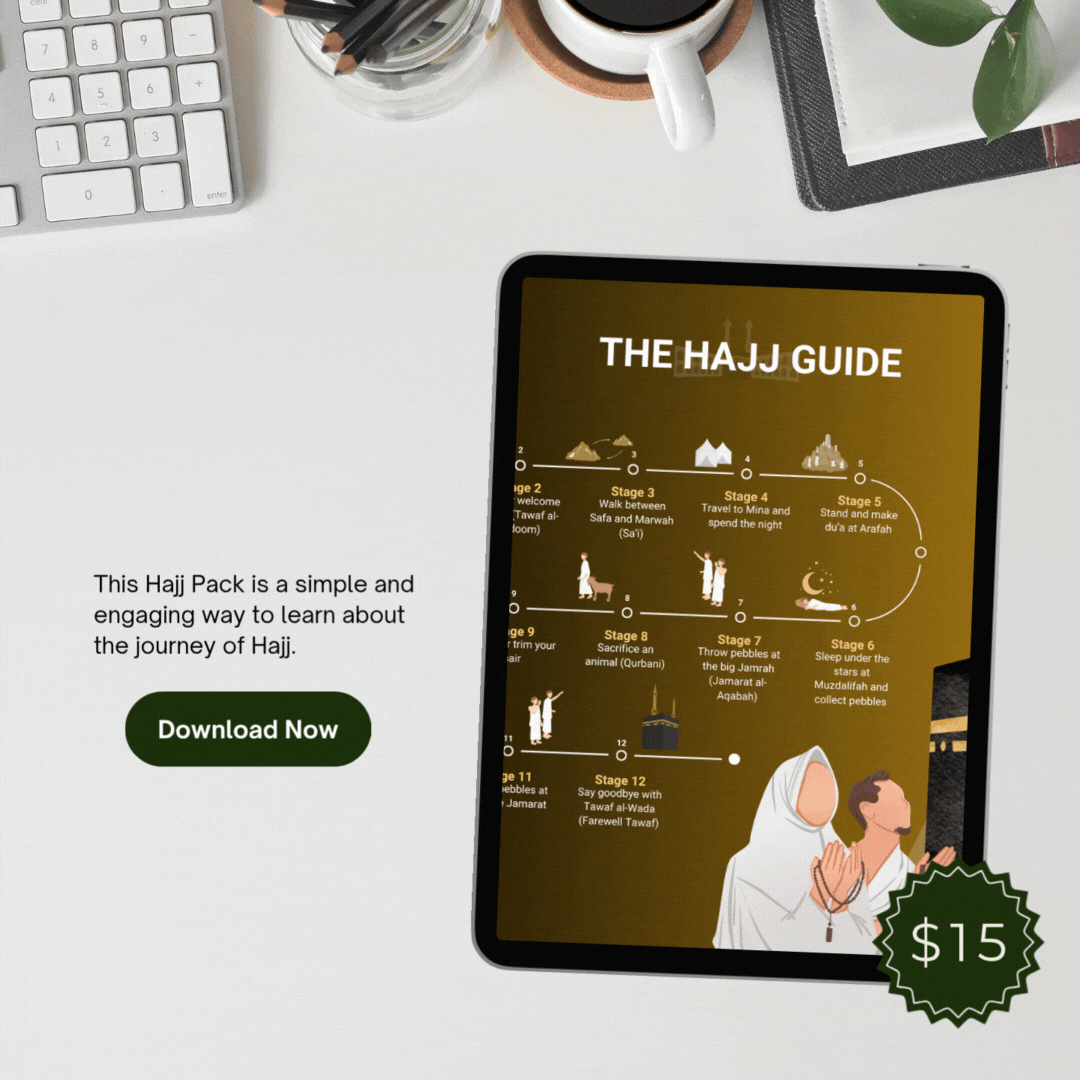This pack is more than just a quiz — it’s a chance to reflect, connect, and share the journey of Hajj with those you love. Use it as a bedtime reflection with your child, a Ramadan/Hajj Week resource at school, or a private learning tool as a new Muslim seeking clarity. However you use it, this pack is here to help you walk the path of Hajj with intention, balance, and ihsan.
